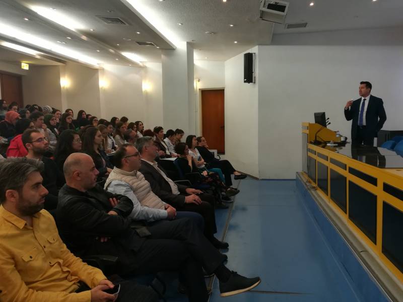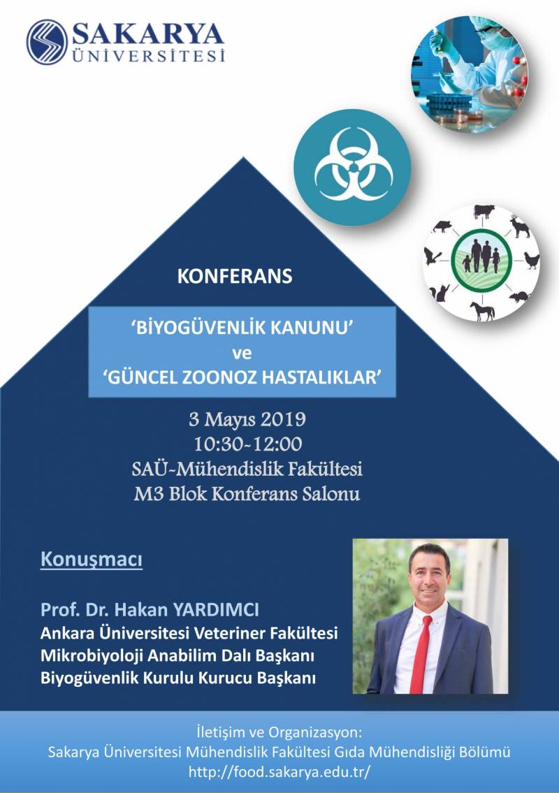 Bölümümüzün organize ettiği ''Biyogüvenlik Kanunu ve Güncel Zoonoz Hastalıklar'' konulu konferans Prof. Dr. Hakan Yardımcı'nın sunumuyla Mühendislik Fakültesi M3 Blok Konferans Salonunda gerçekleştirildi.